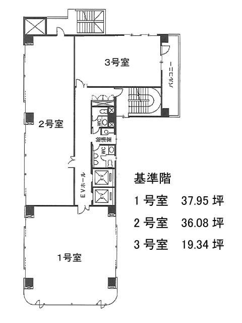 | 階数 | 面積 | 賃料+共益費 | 保証金 | 入居時期 | 更新料 | 償却費 | 礼金 | 平面図 | 詳細 |