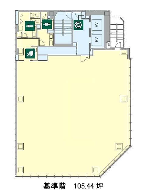 1フロア約105坪の整形・無柱空間が特長の「BIZCORE渋谷」。中央に柱のないすっきりとしたレイアウトが実現されており、柔軟なオフィス設計が可能です。