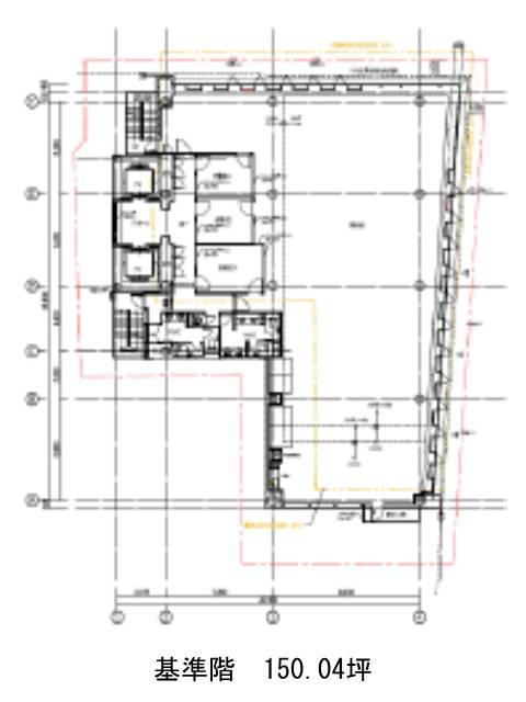 基準階は約150坪の整形空間。L字型ながら柱の少ないすっきりとした構造で、ゾーニングの自由度は高く、働き方に合わせた柔軟なレイアウトが可能です。