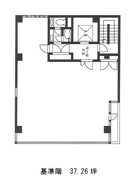 基準階は37.26坪。執務スペースは整形に近く、レイアウト計画を立てやすい区画です。