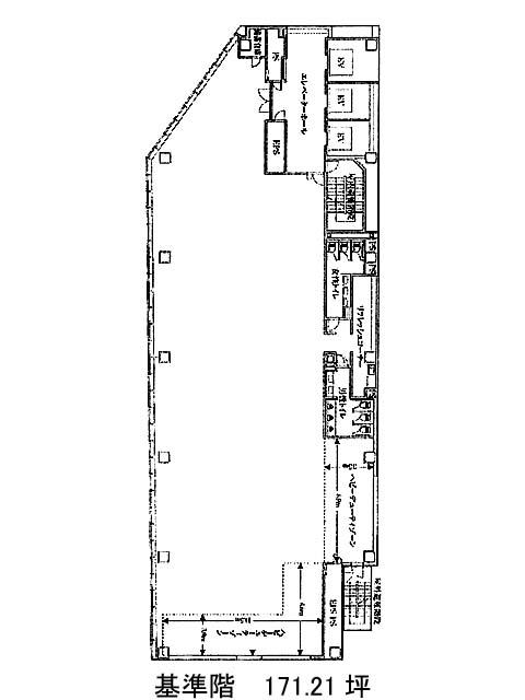 基準階は約 171坪 の大型整形フロアで、壁面に柱を集約した無柱空間設計によりレイアウト自由度が高い点が大きな魅力です。